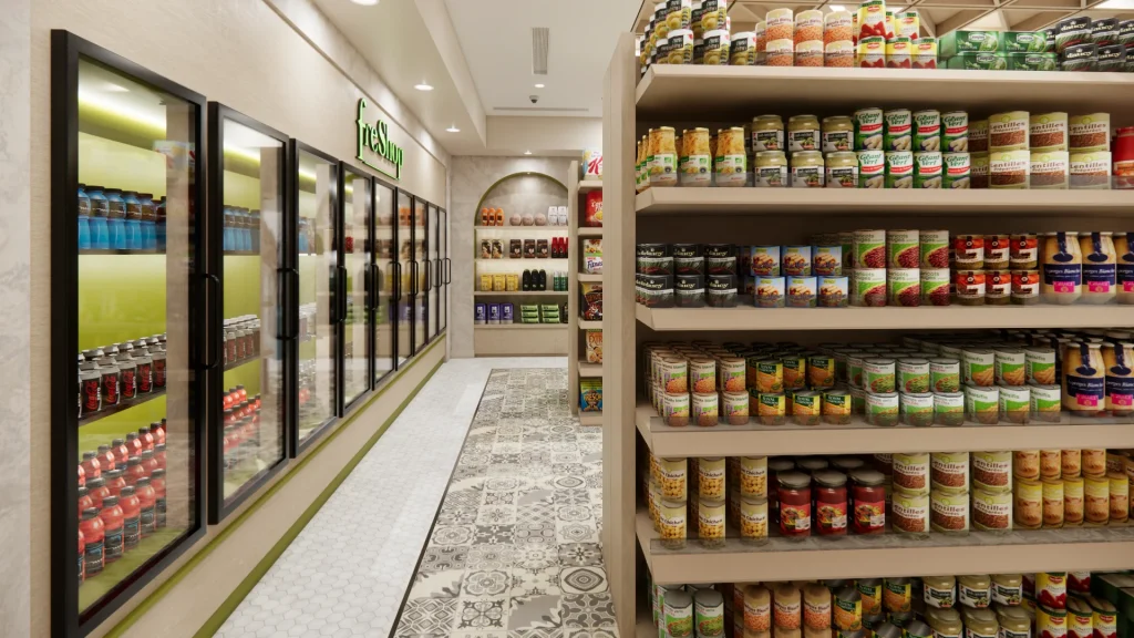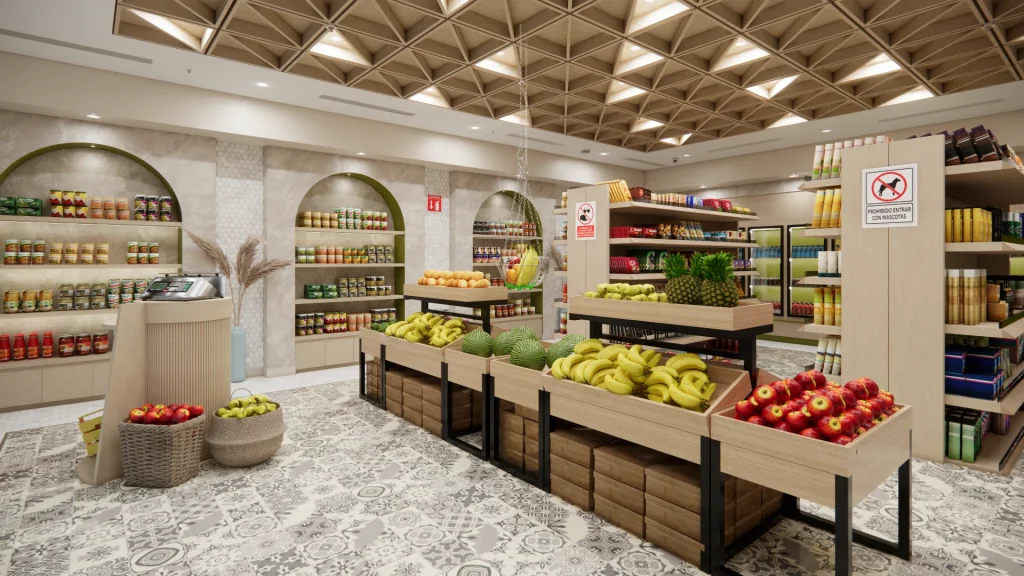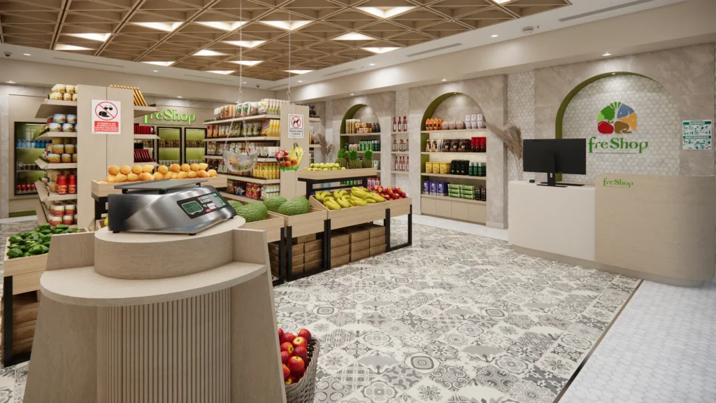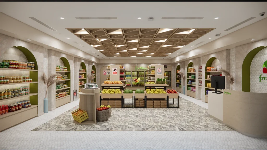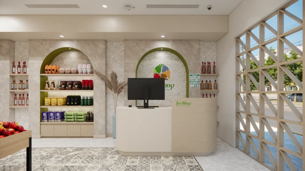 Con una distribución abierta que favorece el tránsito interno y el trabajo eficiente, Fresh Shop se posiciona como un espacio atractivo diseñado para transmitir confianza, estilo y organización. Un ejemplo del compromiso de Roccó con una arquitectura comercial refinada, que refleja la identidad de sus clientes al tiempo que genera ventajas competitivas estéticas y funcionales.